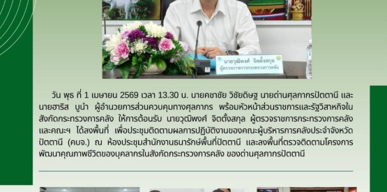 ด่านศุลกากรปัตตานี ให้การต้อนรับผู้ตรวจราชการกระทรวงการคลัง (นายวุฒิพงศ์ จิตตั้งสกุล) ...